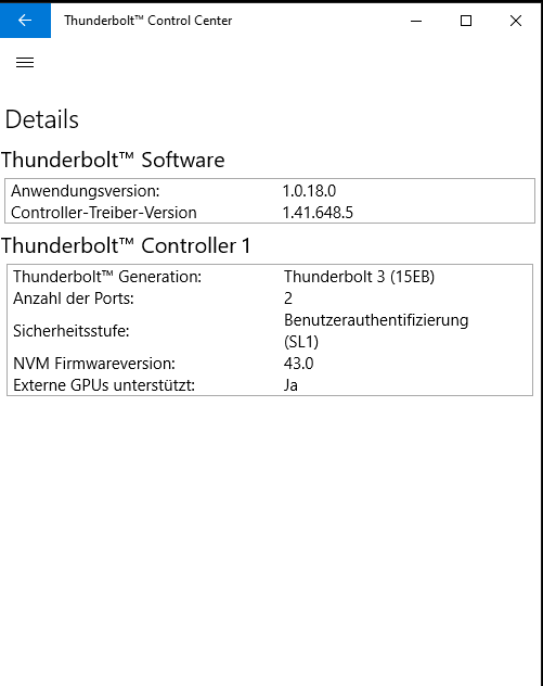 Meine ASUS Thunderbolt Karte wird unter MacOS noch nicht erkannt, dafür aber unter Windows.