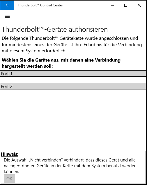 Dann bin ich mal auf die Idee gekommen, bei laufenden Windows-Betrieb, den Stecker vom Thunderbolt Kabel ab zu ziehen,