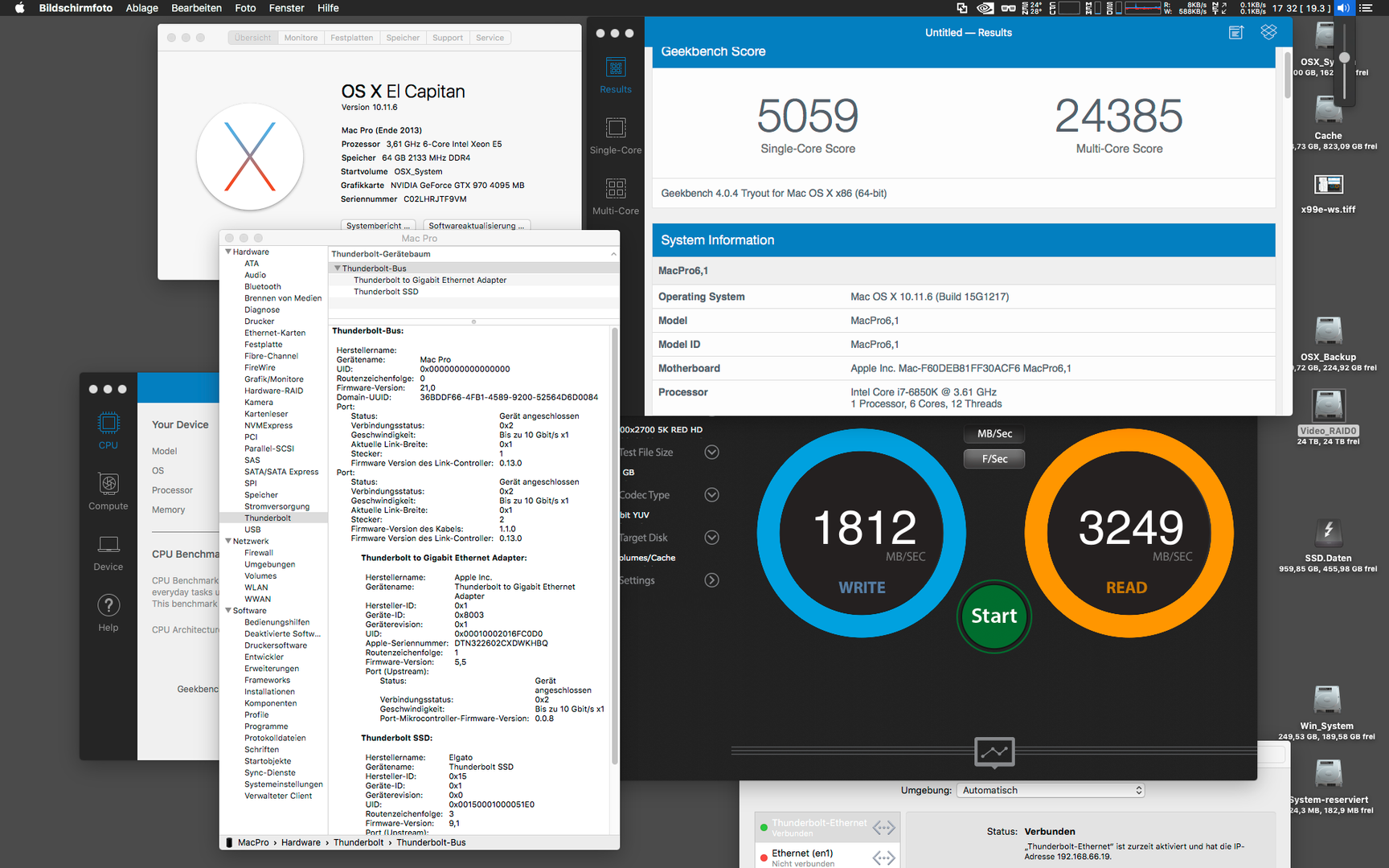 TB Karte wird nicht immer korrekt angebunden und TB SSD wird nicht angezeigt. Nach mehreren reboots gehts dann irgendwann. Ka woran das liegt. habe OsxAptioFix2Drv-free2000.efi und OsxAptioFixDrv-64.efi bei Clover drin. Ohne OsxAptioFixDrv-64.efi wurde die TB SSD nie angezeigt.Basis ist mein Aufbau vom x99-A II + 6800k.