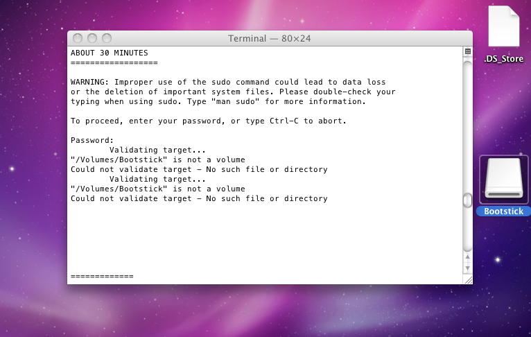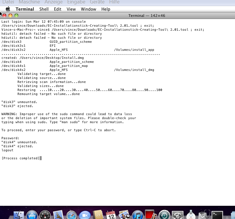 Mein erster Versuch OS X auf der Festplatte zu installieren Ende so