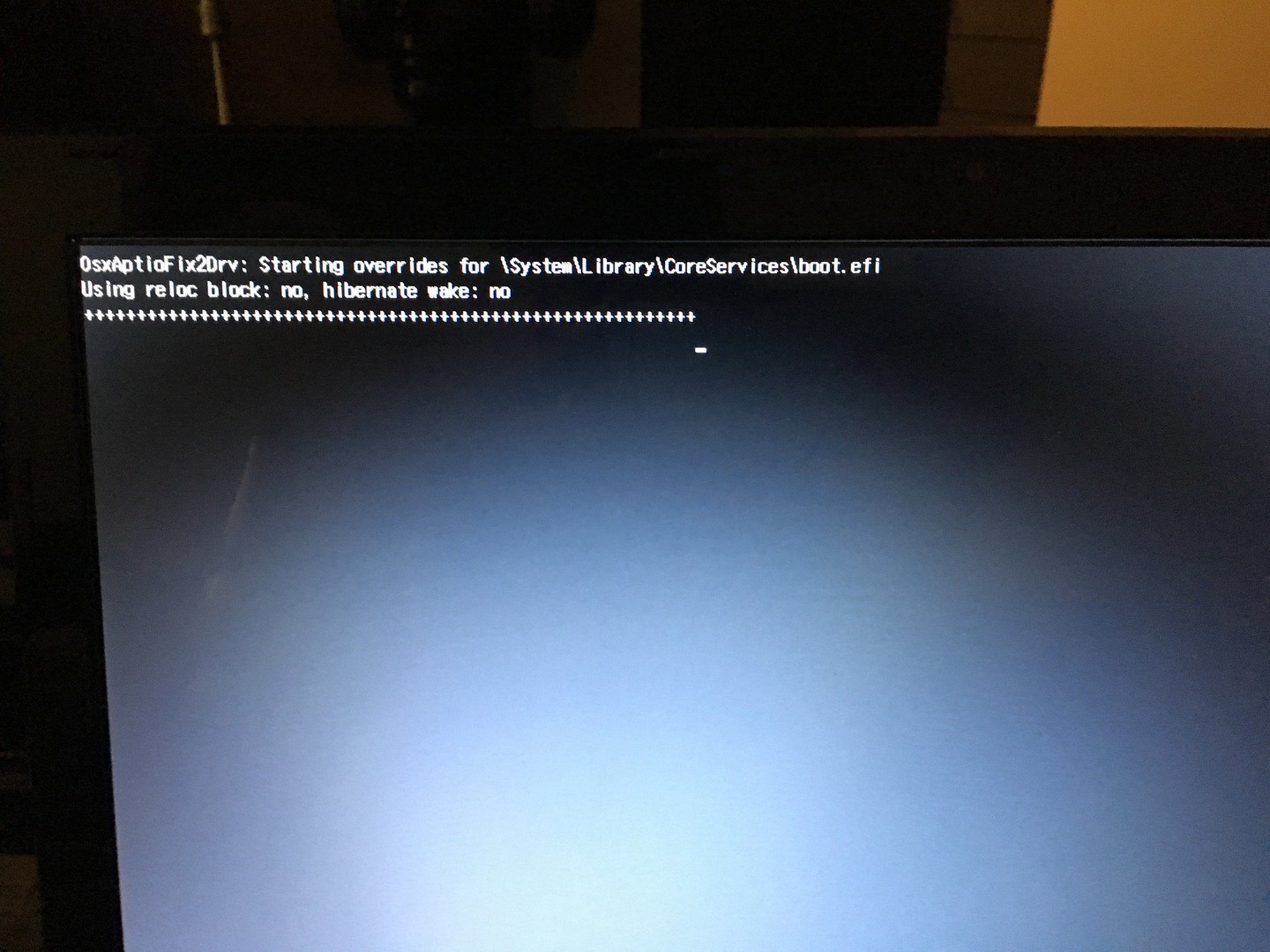 Die Pluszeichen: der Prelinkedkernel wird geladen - und da sind auch kexte drin die geladen werden. Hängt z.B. von der CPU ab, wie lange das dauert. Und wie viele Kexte, ob der P noch ganz ist.