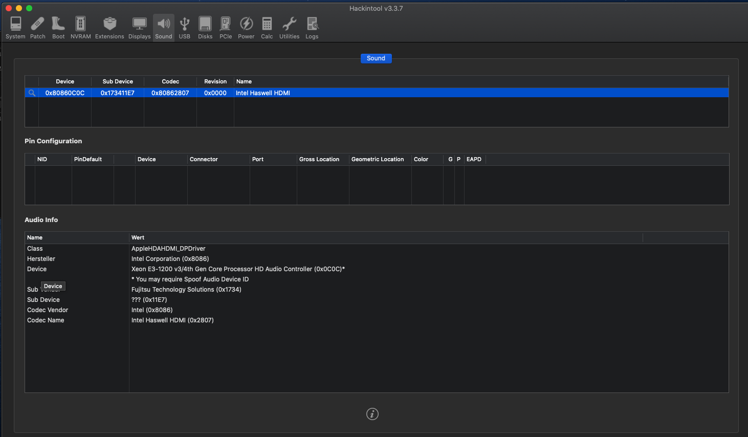 Alsoooo ja genau wir reden über ein Fujitsu Board. Es ist ein Realtek ALC671 drauf. Unter MacOS hat es bisher noch nicht funktioniert. VoodooHDA bedient alles bis auf HDMI und mit AppleALC funktioniert jetzt nur HDMI, sollte man doch dann beiden hinbekommen oder?