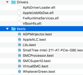 kext: AppleALC.kext, AppleMCEReporterDisabler.kext, Lilu.kext, VirtualSMC.kext , WhateverGreen.kext