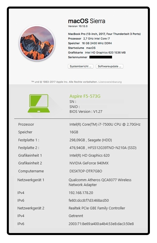 das ist mein erster hackintosh, sag mal im der EFI sind ja alle infos gespeichert um das System zu starten. was mit seriennr. die ist da ja auch gespeichert? wenn jetzt jemand anderes mein fEFI nutzt sind ja 2 mal identische seriennr.im umlauf! gibt es da keine Probleme mit apple?