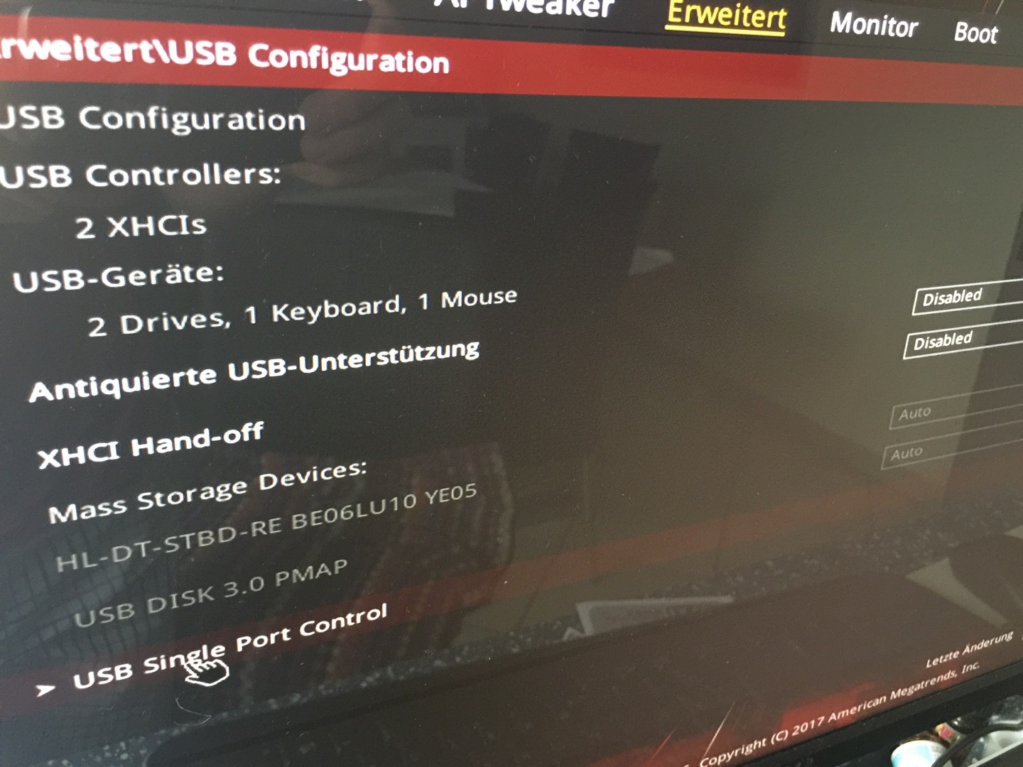 obwohl ich im BIOS USB3 ausgestellt habe: