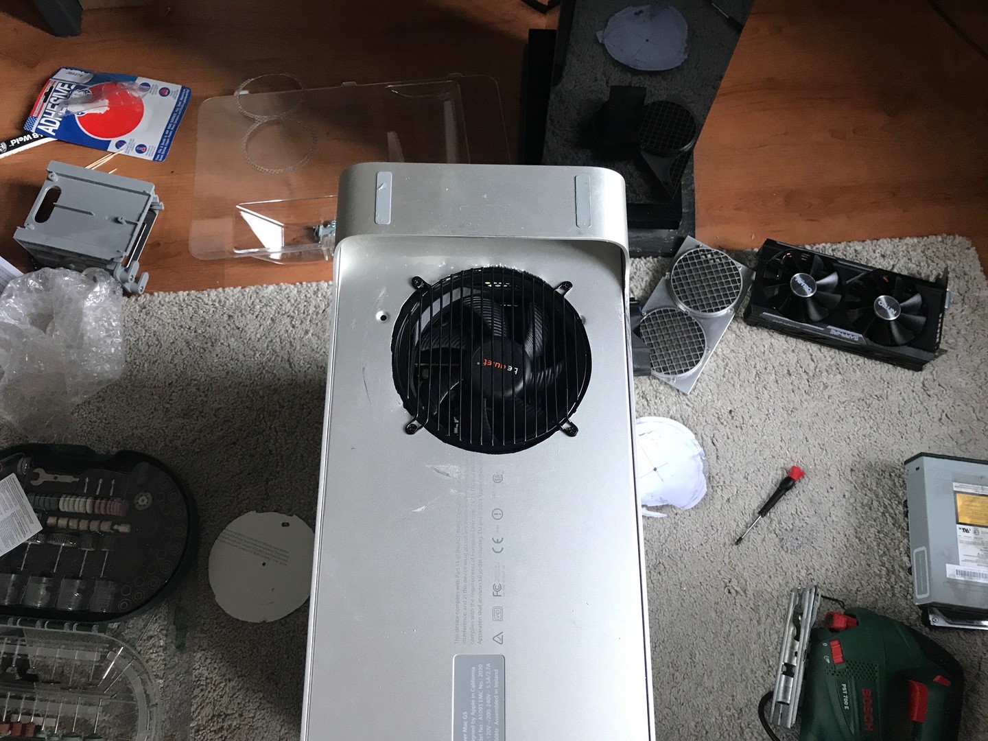 nachdem mein System halbwegs läuft (Probleme sind im Diskussionsthread beschrieben, falls also wer helfen mag: KLICK) dachte ich, kannst du mal so langsam Fotos vom Gehäuse-Mod posten.Ich saß echt lange dran, aber ich liebe basteln. Brauche immer ein Projekt
