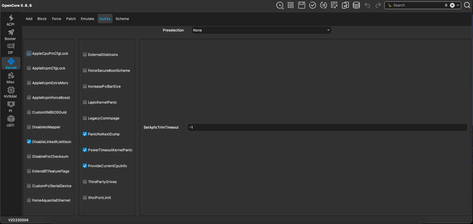In denn anderen Bereiche wie Patch & Quirks ist nix drin alles false .
