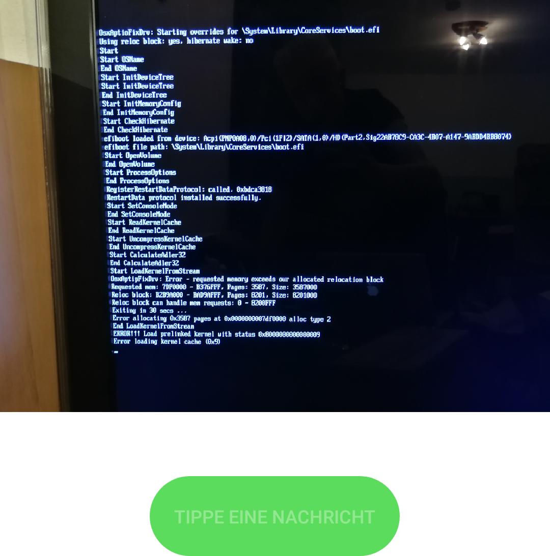 Hallo ich habe alle Optionen probiert bei den OsxAptioFix3Drv-64.efi und den OsxAptioFix2Drv-64.efi hatte ich einen anderen Fehler siehe Bild