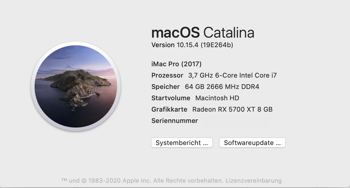 smbios iMacPro1,1 - hatte ich hier gelesen in Verbindung mit der Grafikkarte...