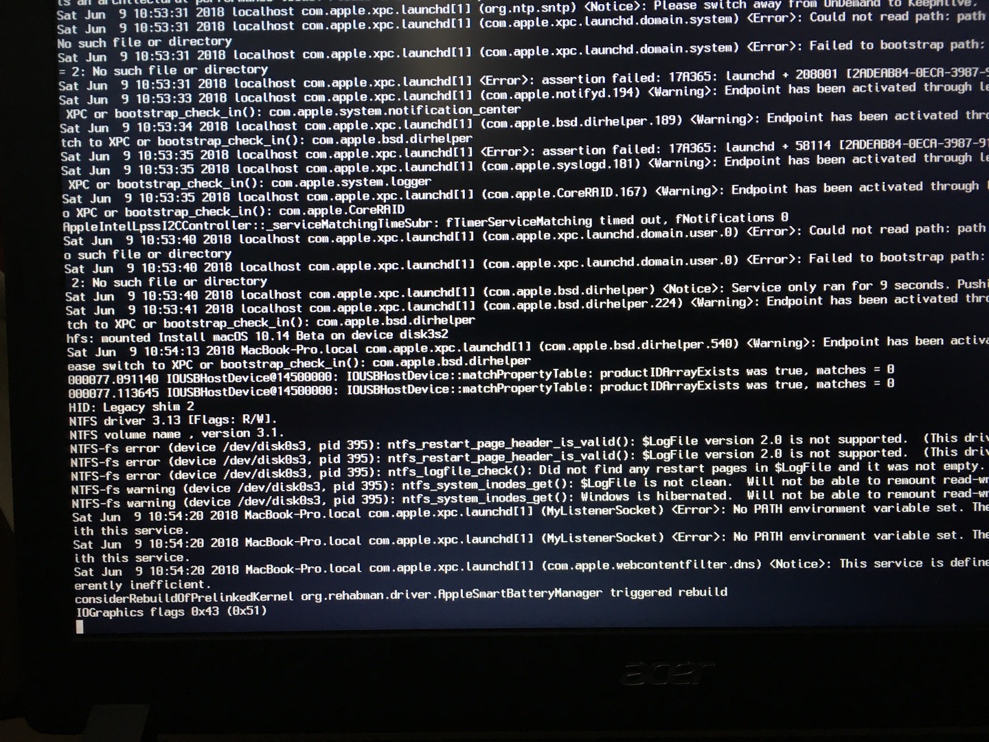 Da ich High Sierra wieder zum Laufen brachte wollte ich nun Mojave installieren was aber nicht funktioniert. Ich habe versucht den Stick zu starten alles ganz normal dann wieder zurück zur Clover dann war da auch schon Mojave zum installieren startete. Dann stand dort: 40 Minuten verbleibend und dies geschah: -