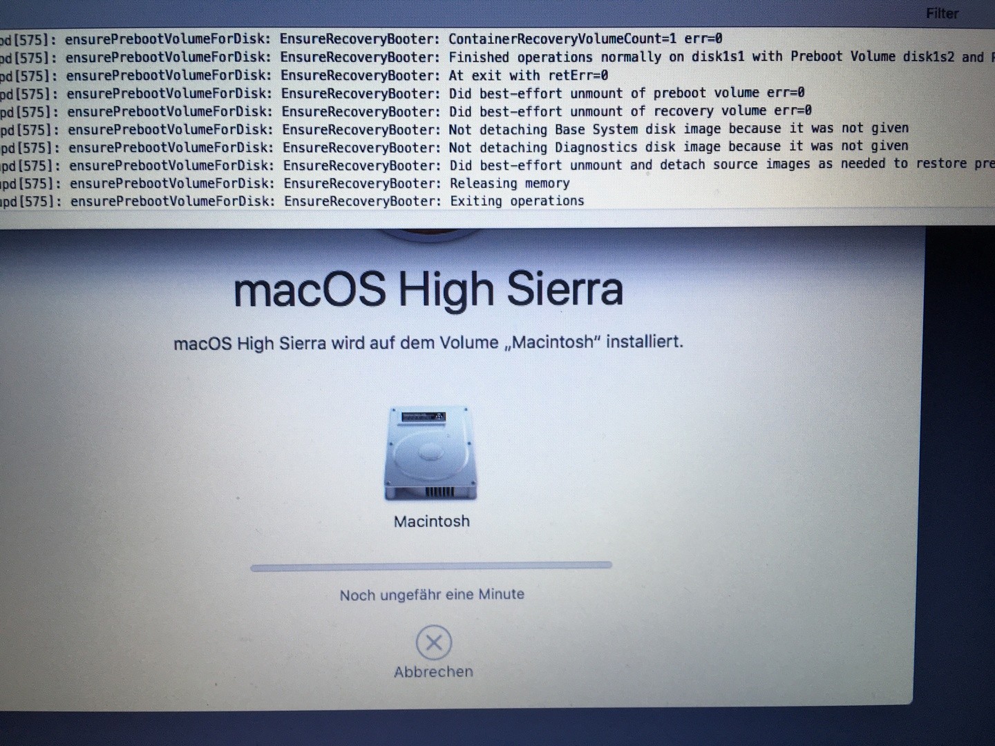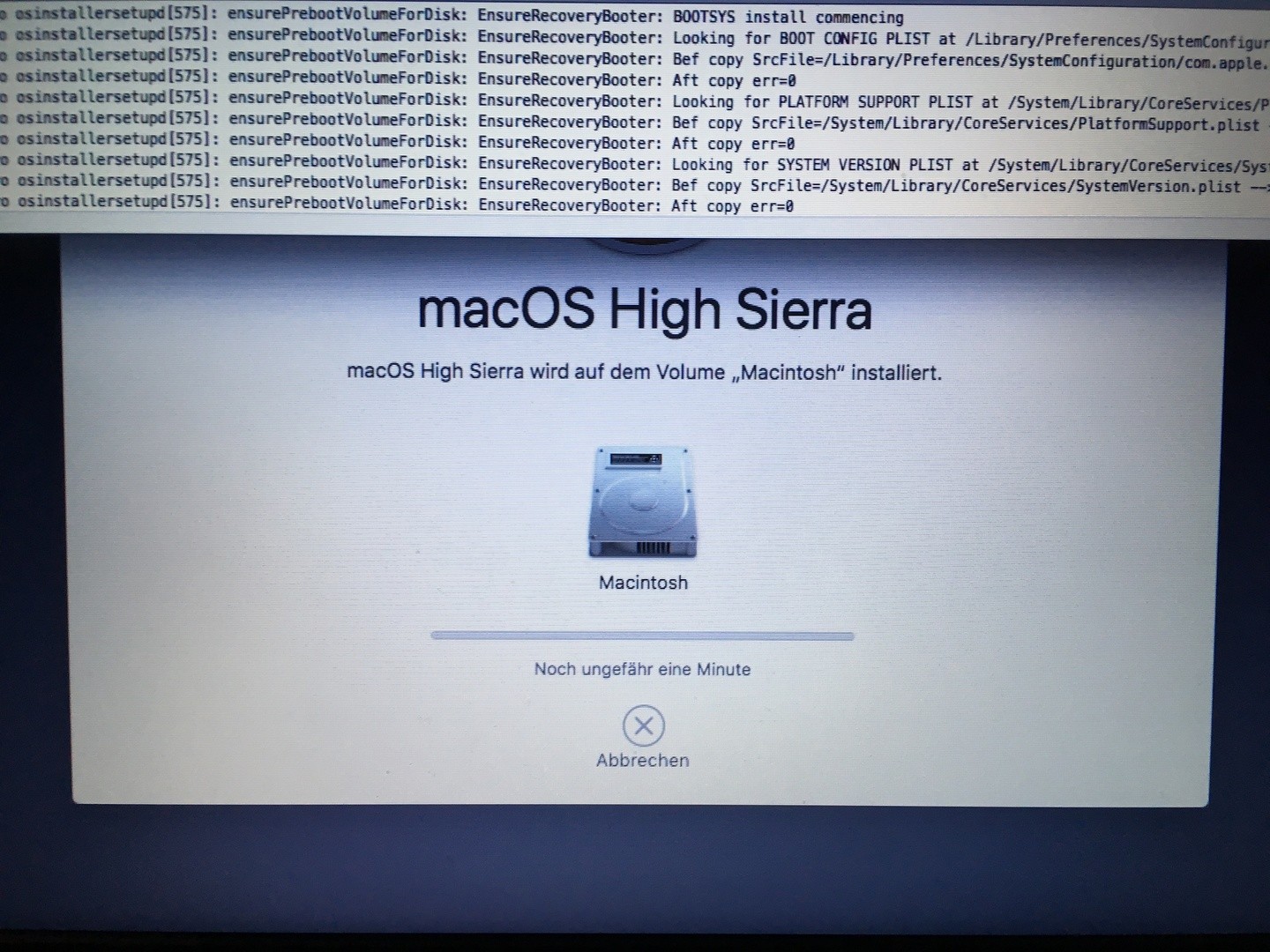 ich habe grade versucht High sierra erneut zu installieren, es klappt aber nicht. Naja ich komme durch den installer komischer weise ohne Internet und dann wird es halt auf der Festplatte installiert alles ganz normal. Dann rebootet er, als der ladebalken voll ausgefüllt war, ich kehre zu Clover zurück und Nix hat sich geändert. Woran kann’s as liegen?