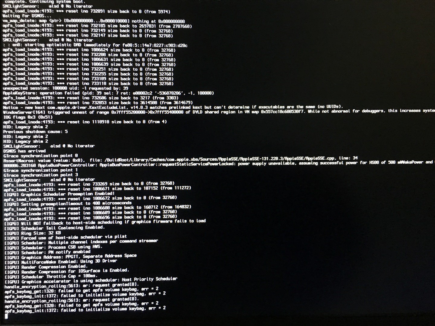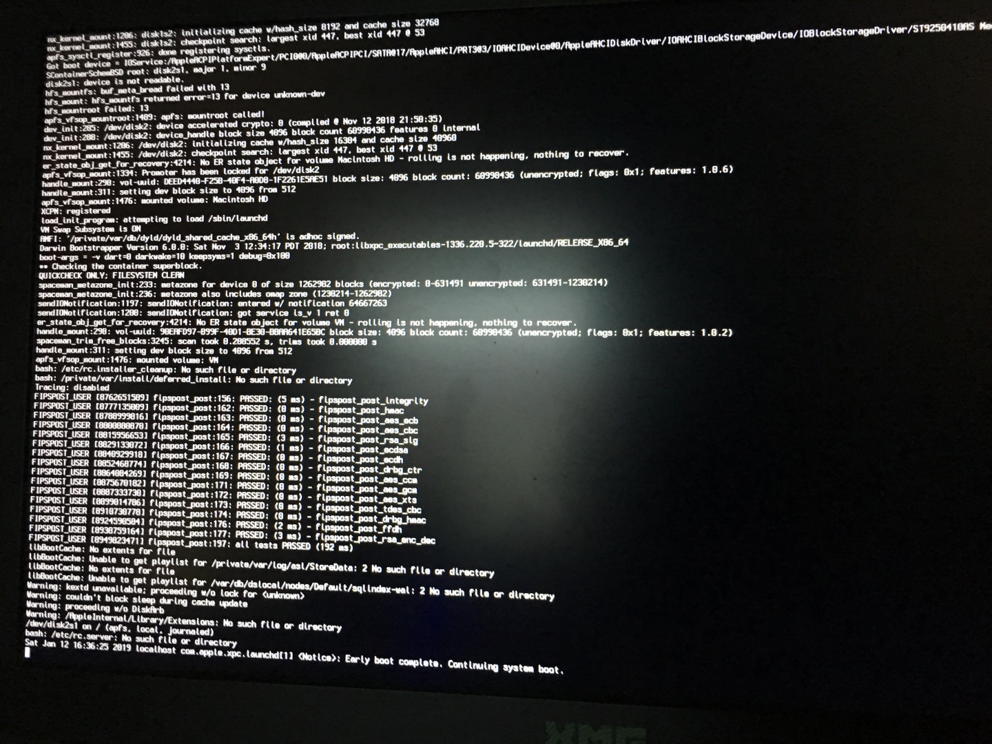 Aber Stand jetzt muss ich immer mit -x booten, sonst bleibt er bei "Early Boot Complete. Continuing System boot." stehen, hier mal ein Bild: