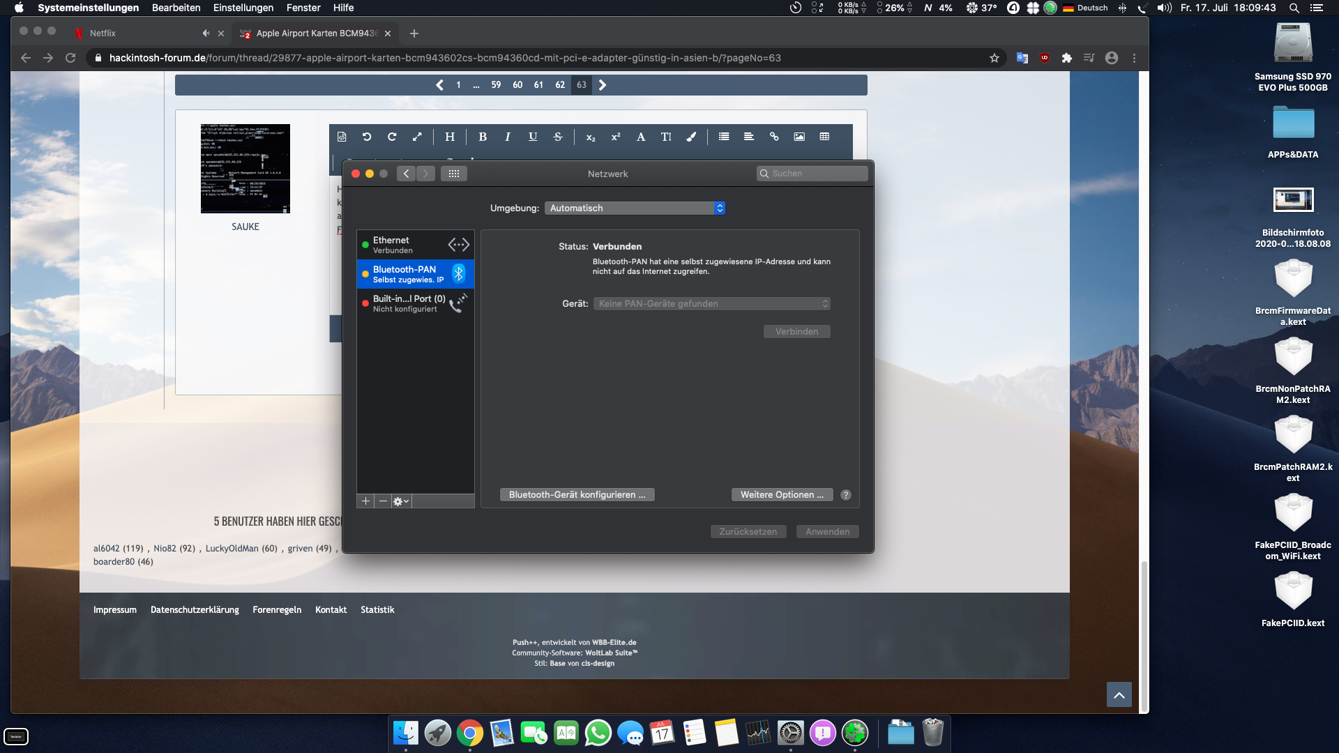 Achso das wusste ich leider nicht und habe alle kexts wieder entfernt und habe auch das WLAN per Hackintool anbekomme und hoffe ich habe es richtig gemacht aber AirDrop geht einfach nicht an und was muss ich den genau machen?