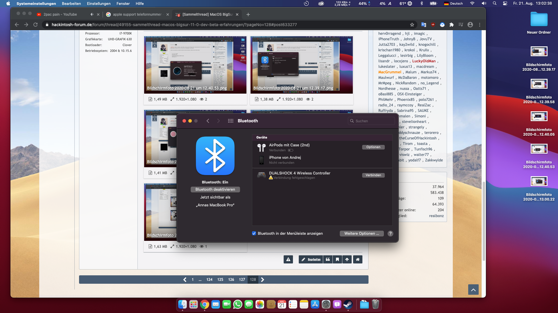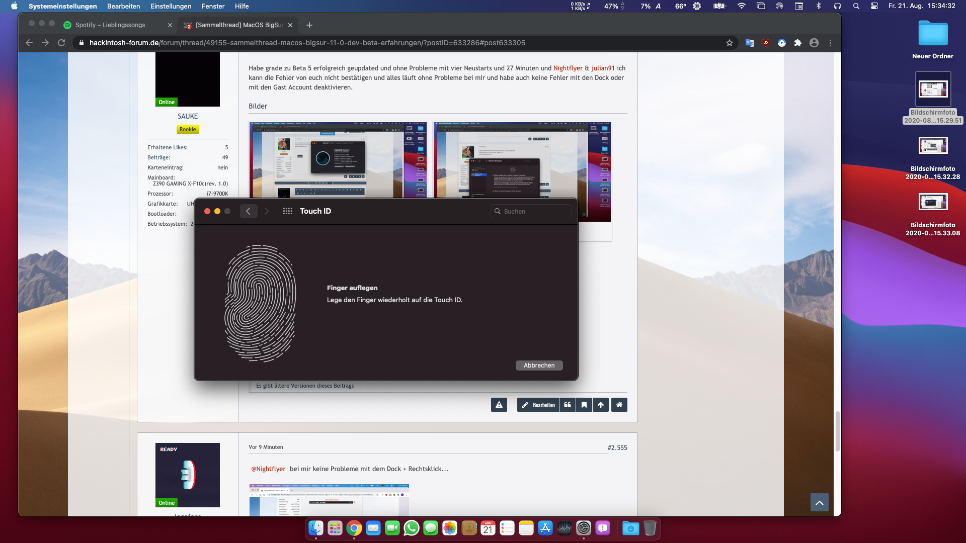 Und zwar habe ich manchmal richtige Probleme mit (Bluetooth) das ich mich ab und zu garnicht mit den Geräten verbinden kann und ich weiß jetzt nicht ob das (Bluetooth) defekt ist oder ob das an (Big Sur Beta) liegt und das zweite Problem ist das (Touch ID) garnicht geht und ich bekomme voll die komische Fehlermeldung die gar kein sinn ergibt und bin irgendwie verwirrt und weiß auch nicht ob es defekt ist oder an der (Beta) liegt, und meine frage ist hat einer von euch auch solche Probleme???