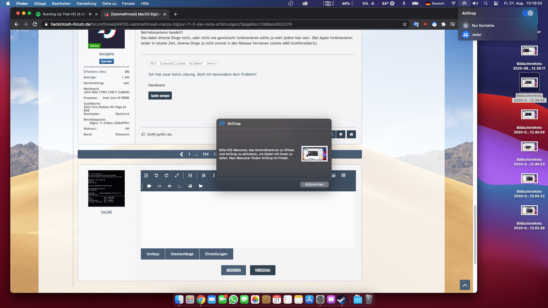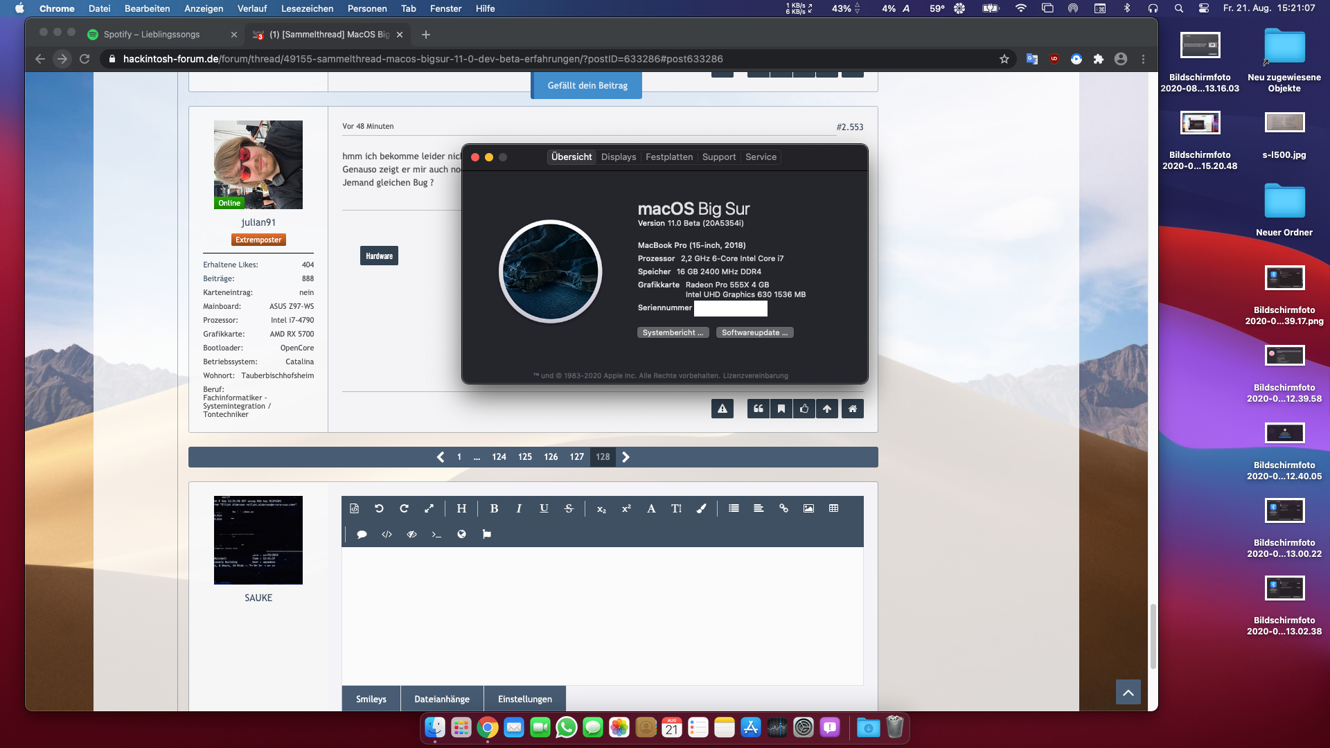 julian91, wie meinst du das jetzt? Bei mir kommen echte Probleme unter (Big Sur) voll die Matrix