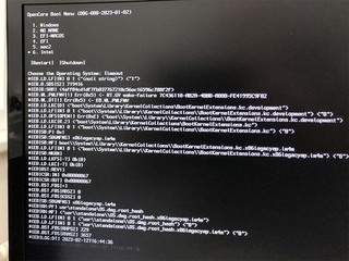 Ich schalte den Rechner ein, der Bildschirm ist ca. 5 Sekunden lang schwarz, dann erscheine eine Fehlermeldung vom UEFI (Foto ist in Post #18) Ich drücke dann F1 um ins UEFI-Setup zu kommen, verändere dort nichts, und drücke dann F10 gefolgt von Enter um das Setup wieder zu verlassen, und dann läuft der Bootvorgang wie erwartet ab. (Kurze Zeit schwarzer Bildschirm, dann Auswahlmenü von OpenCore, wie soeben beschrieben.)