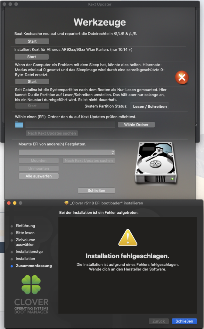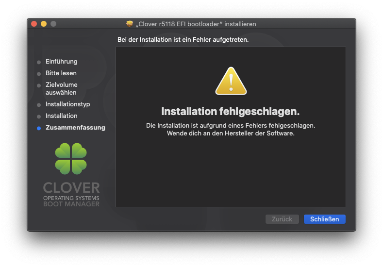 cmoers Leider kriege ich diese Meldung beim Updaten von Clover, nachdem ich auf "Trotzdem installieren" gegangen bin:
