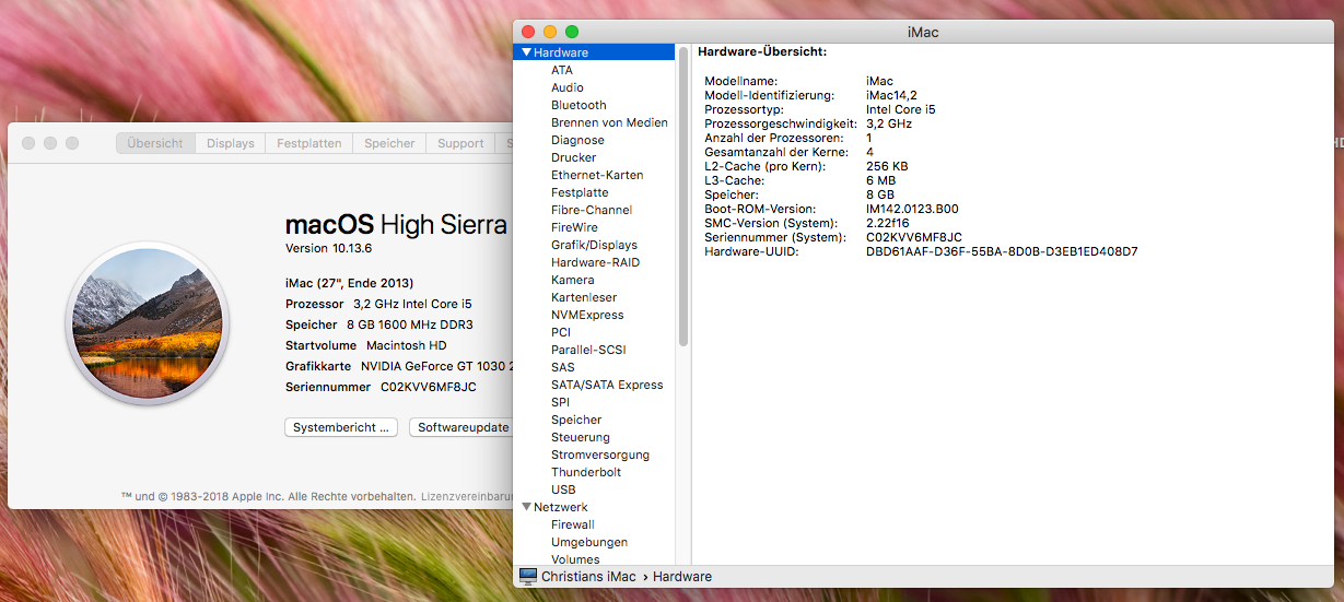Die Hardware UUID stimmt auch mit dem Wert der defaults.plist überein, nur die Serial ist eine andere.