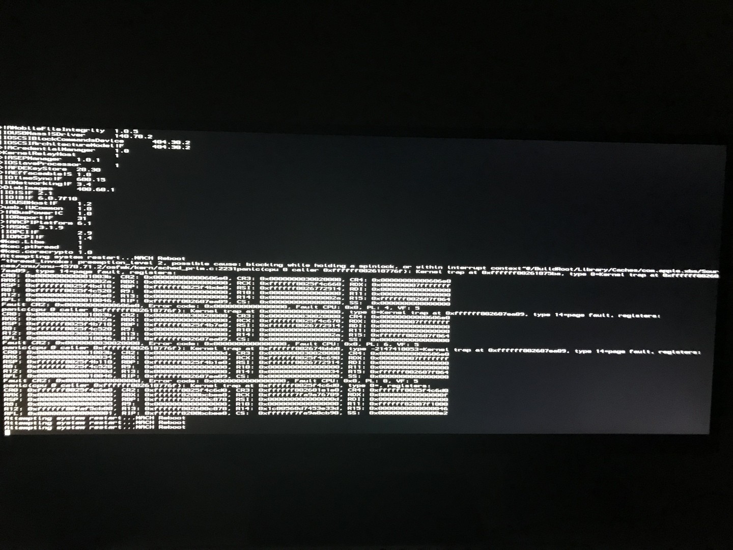 Wie gesagt, dazu müsste ich die Platten alle wieder umstöpseln, daher dachte ich ich kann einige Dinge vorher ausprobieren. Google hat z.B. ausgespuckt dass ich in Clover in den Boot Options im binaries patching Ordner den Punkt „AppleIntelCPUPM Patch“ aktivieren soll. Und was soll ich sagen, damit komme ich auf jeden Fall schon weiter. Ich sehe jede Menge Ausgaben, es kommt ein reboot, aber dann hängt es wieder im Apfel Logo und der Balken bewegt sich nicht. Leider wird die Option -v nicht fest übernommen, kann man das irgendwo speichern?