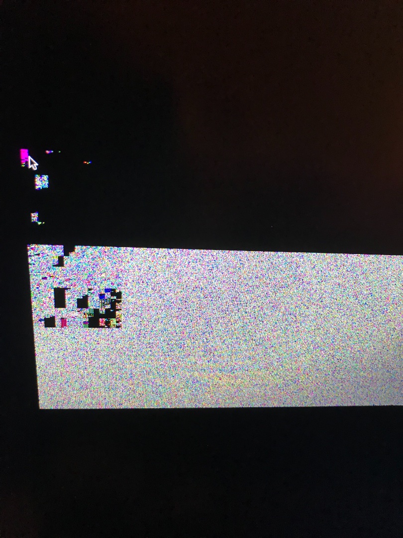 test 2. Dual cards card one HDMI slot 1, card 2 DisplayPort. card 1 boots t black screen but has small screen with distortions (see pic) card 2 boots to Mojave normal use.