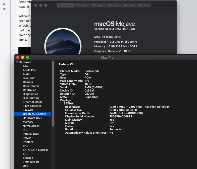 I could get 14.4 ver 3 to work with 2x VIIs, now I have it with one card and no IGPU. If it was as you say that my IGPU was somehow active I would not get similar results to you in 10.14.4 beta 3. My results are very different in 10.14.4 beta 2.