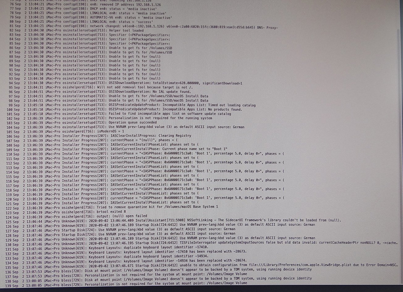 So weit - so gut...oder eher "nicht gut". Denn die Installation von Catalina 10.15.6 bricht 2 Minuten vor Schluss ab.