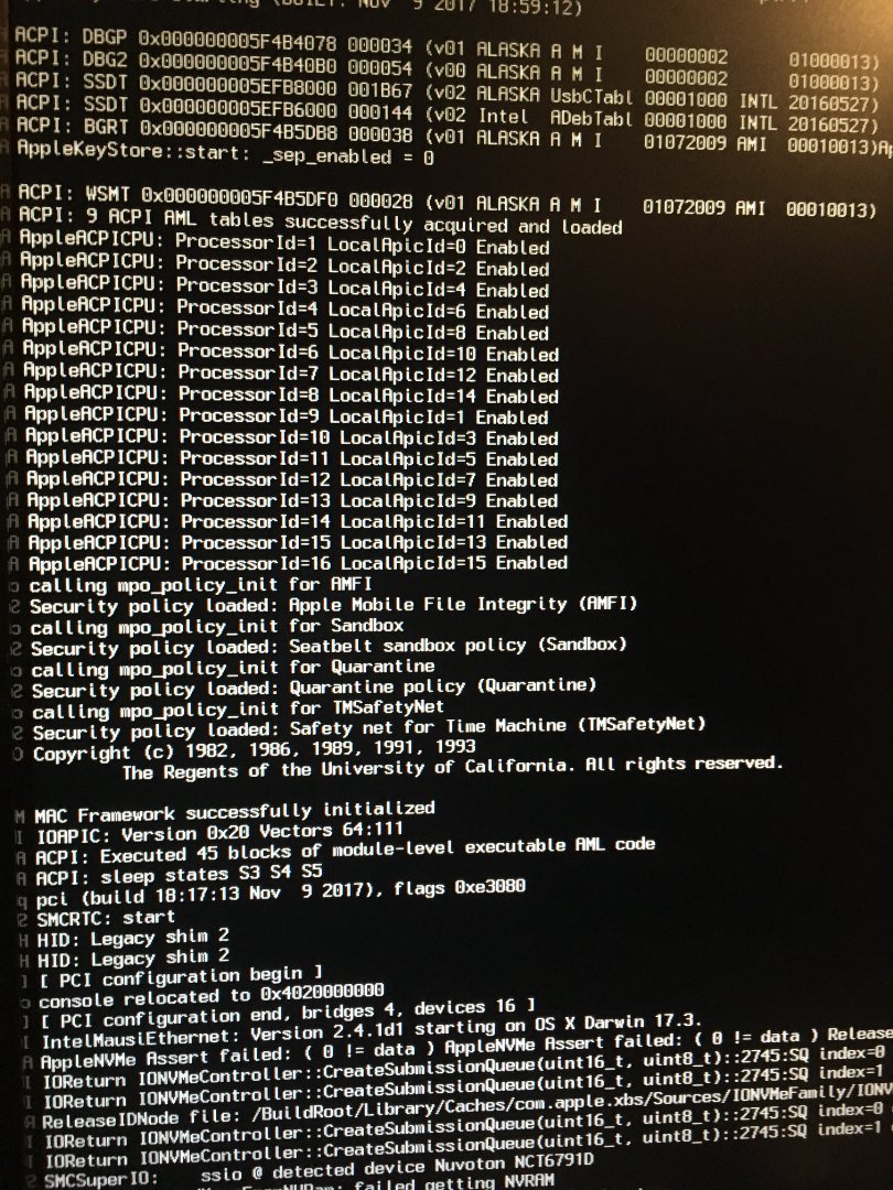 Hatte zunächst schwierigkeiten mit NVME, die aber nach langem rumprobieren (einstellungen clover configurator, patch, kexte usw) dann behoben waren. Habe auch ntfs und kexte für das dateisystem das mojave nutzt mit auf den stick damit die partition erkannt wird. Allerdings komme ich garnicht nicht soweit. Ich habe im netz versucht herauszufinden was das prob sein könnte, ohne erfolg. Ein blick auf die bilder zeigt die fehler....