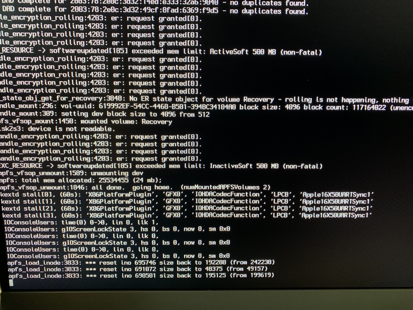 Ich habe auch die DSDT probiert, jedoch hängt er nun im Bootscreen und scheint etwas zu suchen. (Bild im Anhang)