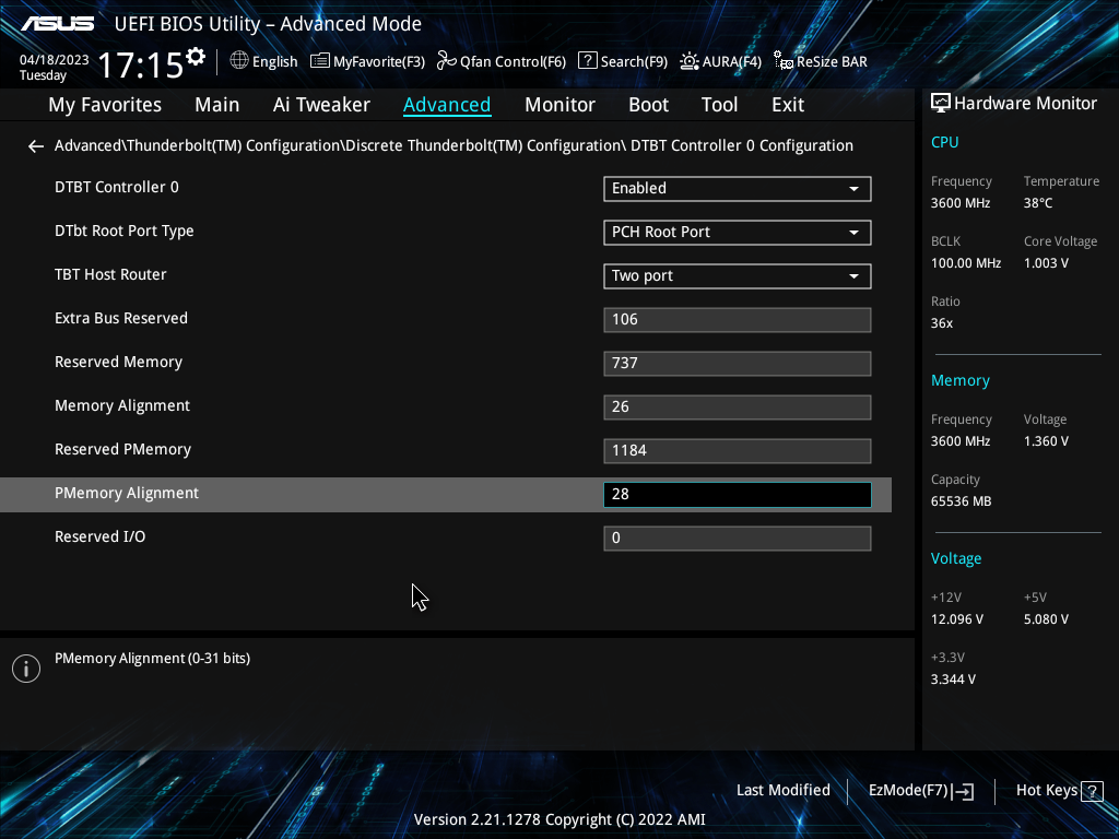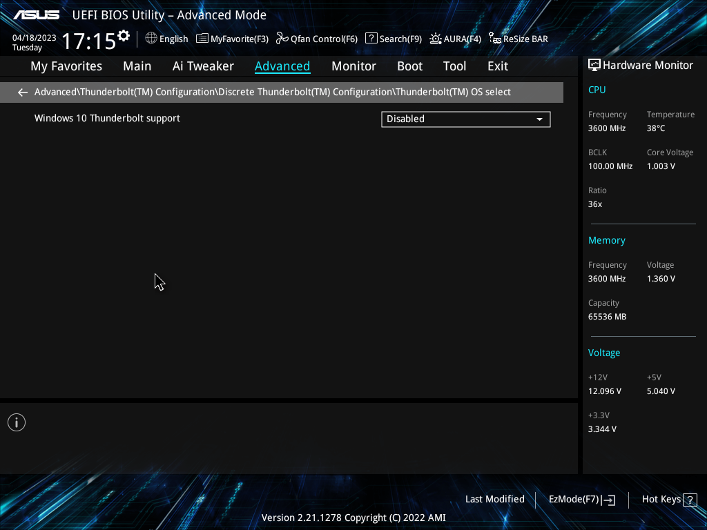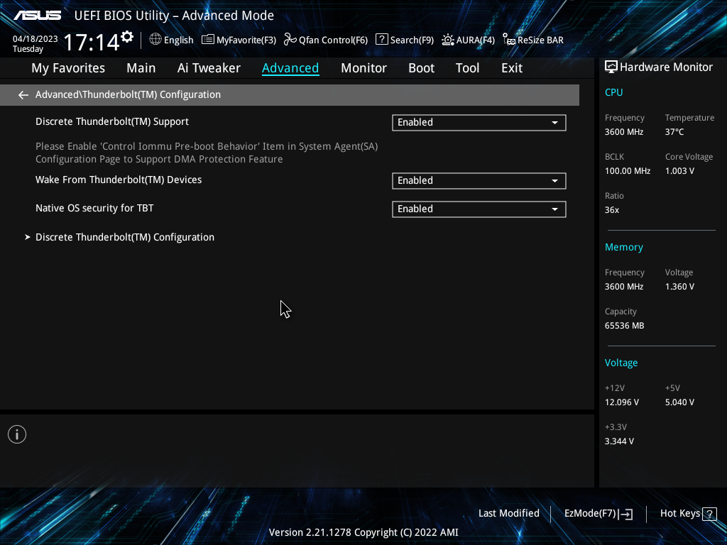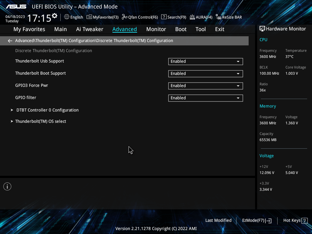 Die Titan Ridge hatte nicht den passenden TB-header Anschluss.