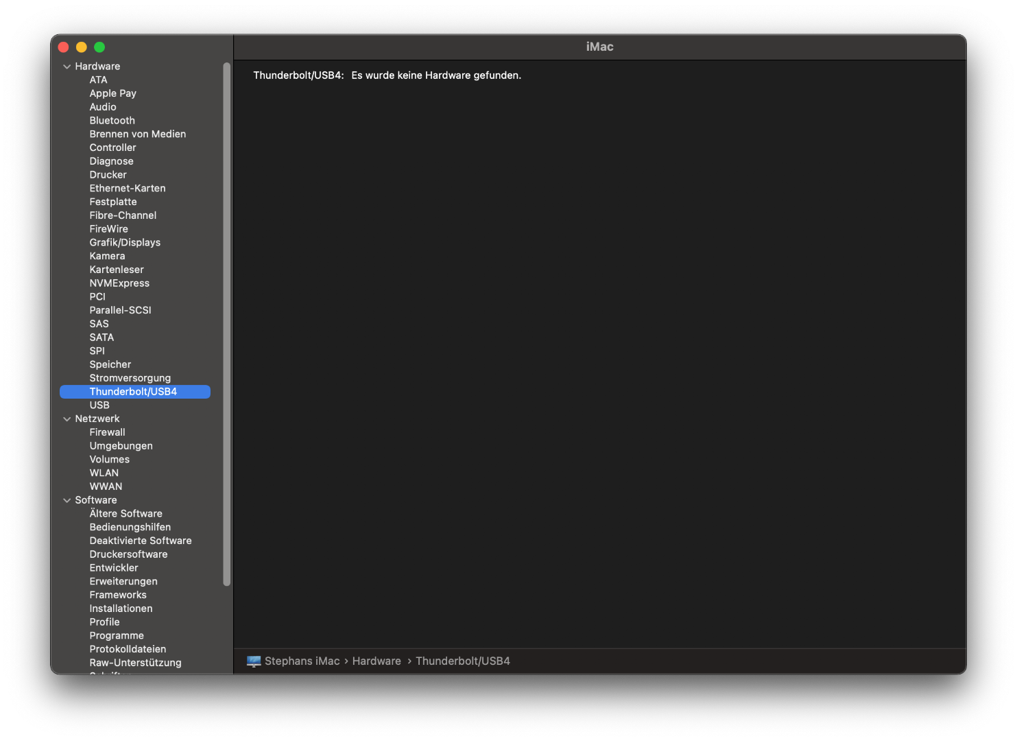Ich habe jetzt die UAD Software installiert, die EFI vom Bootstick musste ich noch auf die Platte legen und alles funktioniert einwandfrei. Wie schon KungfuMarek bemerkte: im Systembericht unter Thunderbolt erscheint die Meldung keine Hardware angeschlossen.