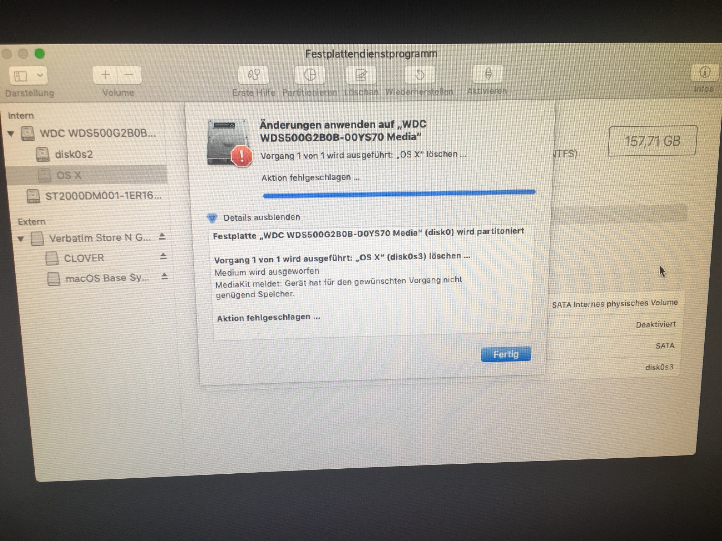Edit: habs geschafft durch hinzufügen der ahcpi kext. Nun kann ich aber nicht die Festplatte formatieren wie ich muss.