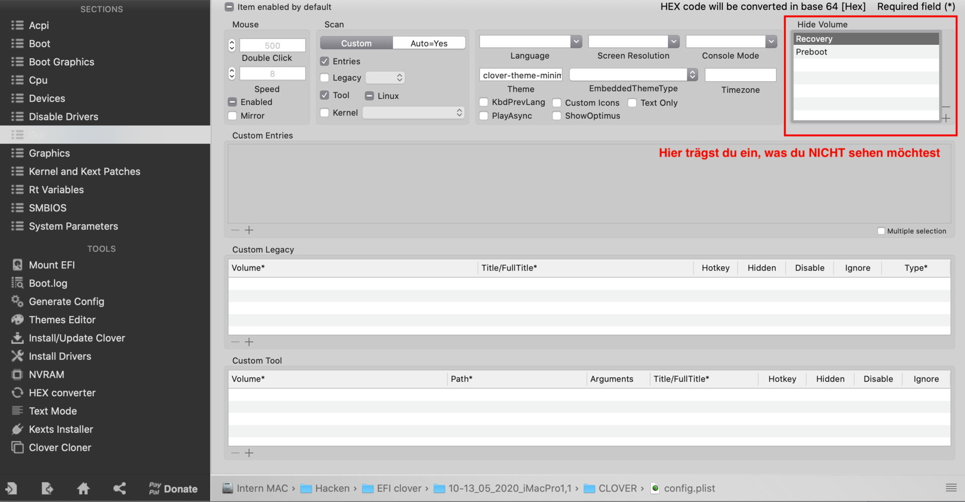 EFI Partition / EFI ordner / CLOVER ordner/ config.plist