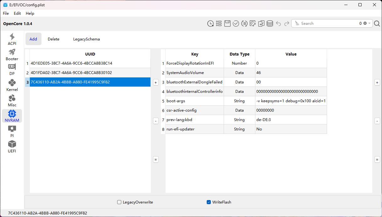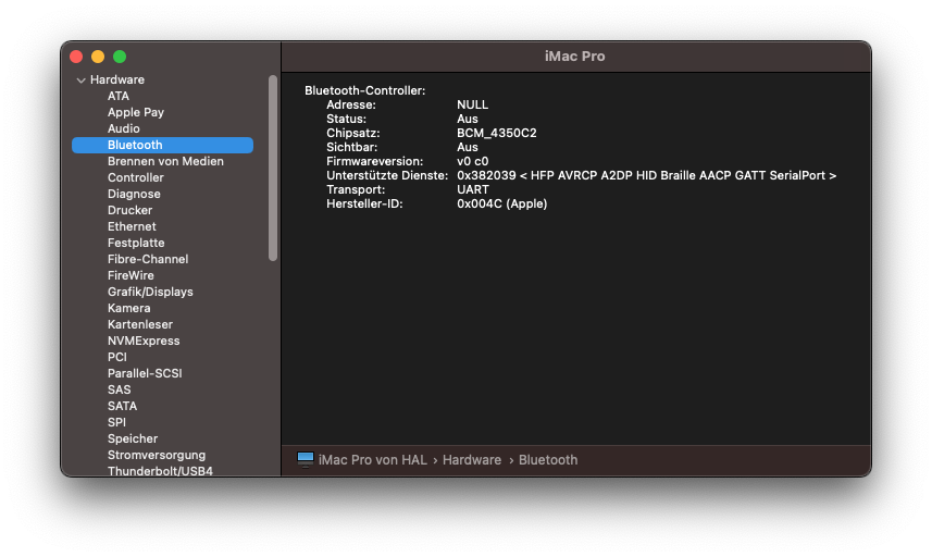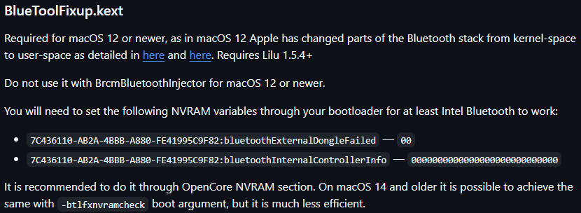 Unter Ventura mit den Einträgen bluetoothExternalDongleFailed & bluetoothinternalControllerinfo unter NVRAM bei Add & Delete und BlueToolFixup.kext (OC 1.0.4) hat sich leider keine Änderung eingestellt.