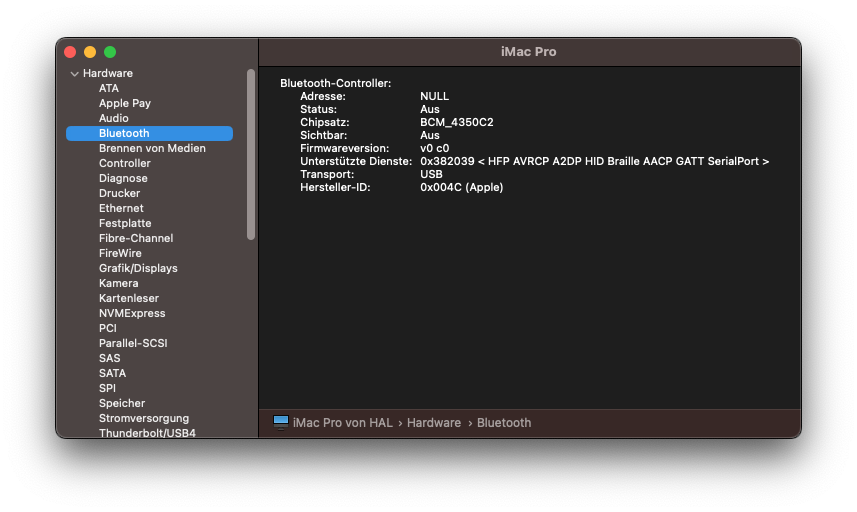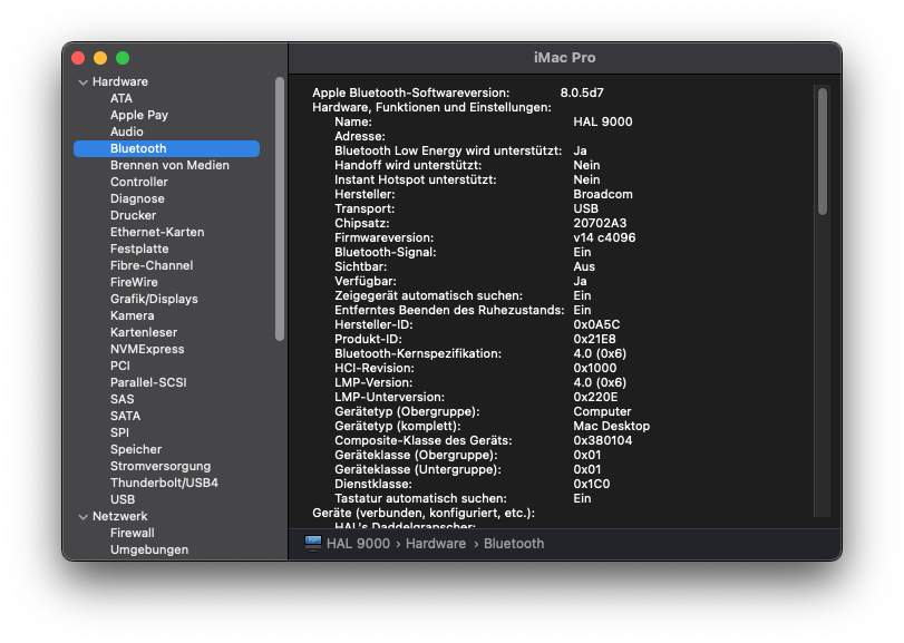 Hier der Systembericht von BigSur ohne die beiden Einträge im NVRAM-Tab der EFI (OC 1.0.3) und ohne BlueToolFixup.kext: Der Dongle funktioniert da einwandfrei. Den kann man als Fehlerquelle, denke ich, ausschließen.