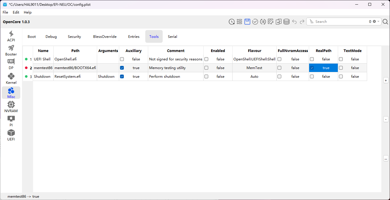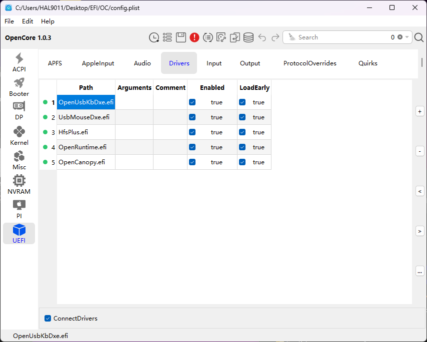 Kann ich hier getrost die Häkchen bei LoadEarly rausnehmen oder geht dann was capout (OpenVariableRuntimeDxe.efi ist nicht in Benutzung)? - Hat meine USBToolBox.kext automatisch einen ausführbaren Pfad wenn ich die in den EFI-Ordner kopiert habe? Weiß das jemand?