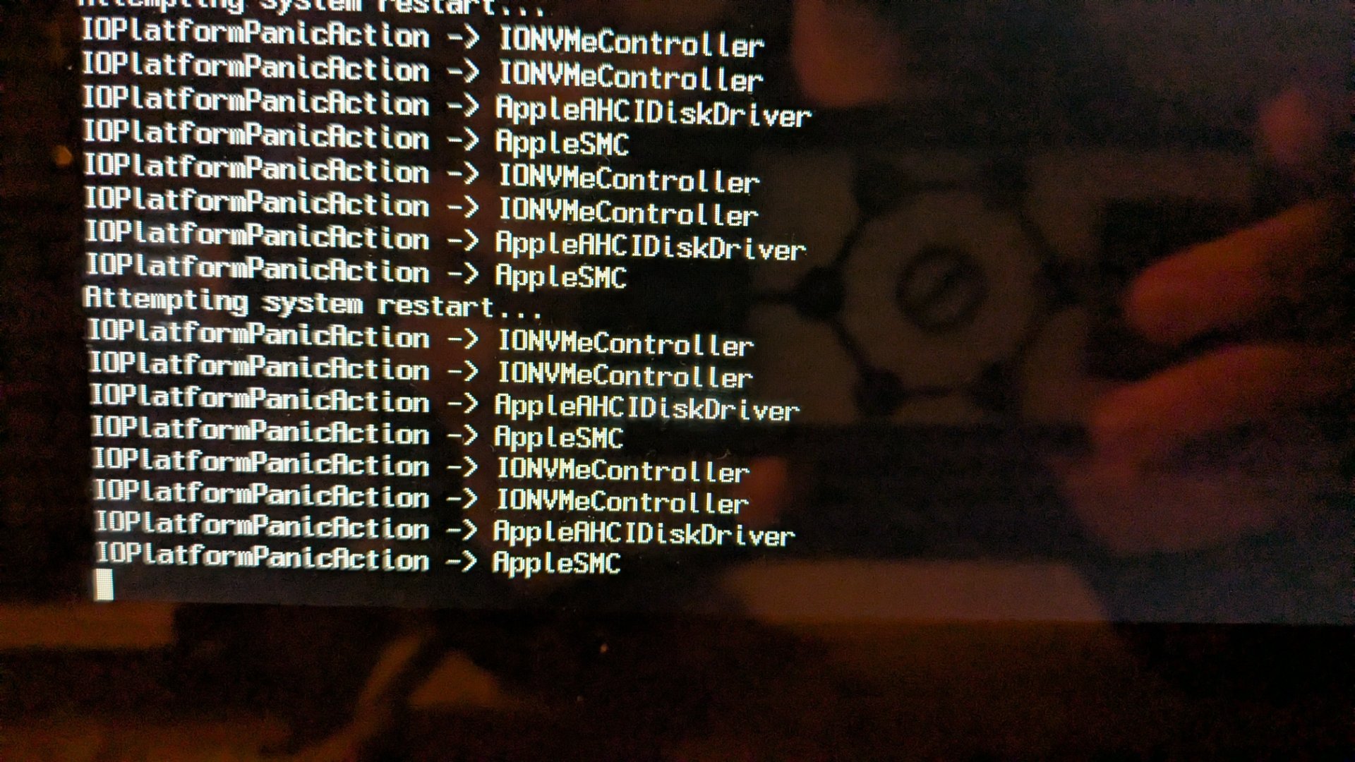 Wenn ich normal, so wie immer boote, bekomme ich folgenden Screen:Und wenn ich von meinem EFI-Backup-Stick boote, kommt das ganz schnell und oft hintereinander und bleibt dann stehen: