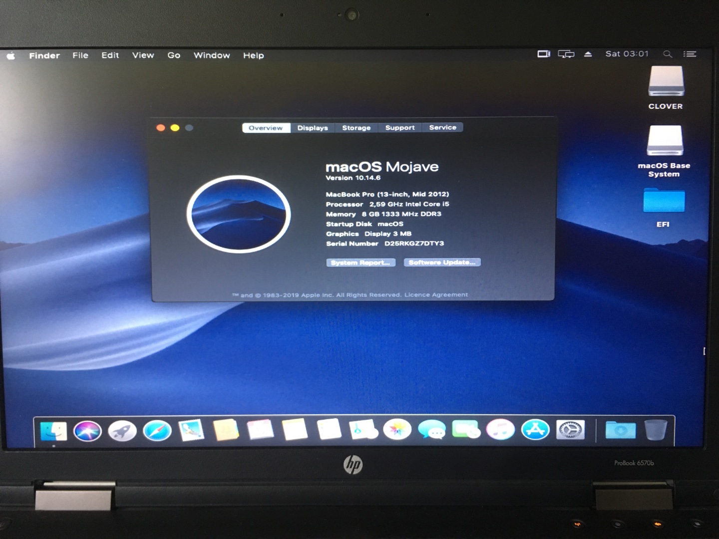HP Probook 6570b + Mojave (min. High Sierra)