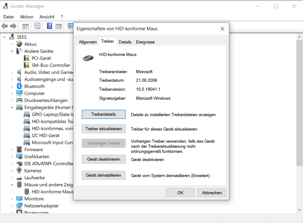 Der Geräte-Manager unter Windows hält das Gerät genauso wie Linux für ein HID-Gerät: