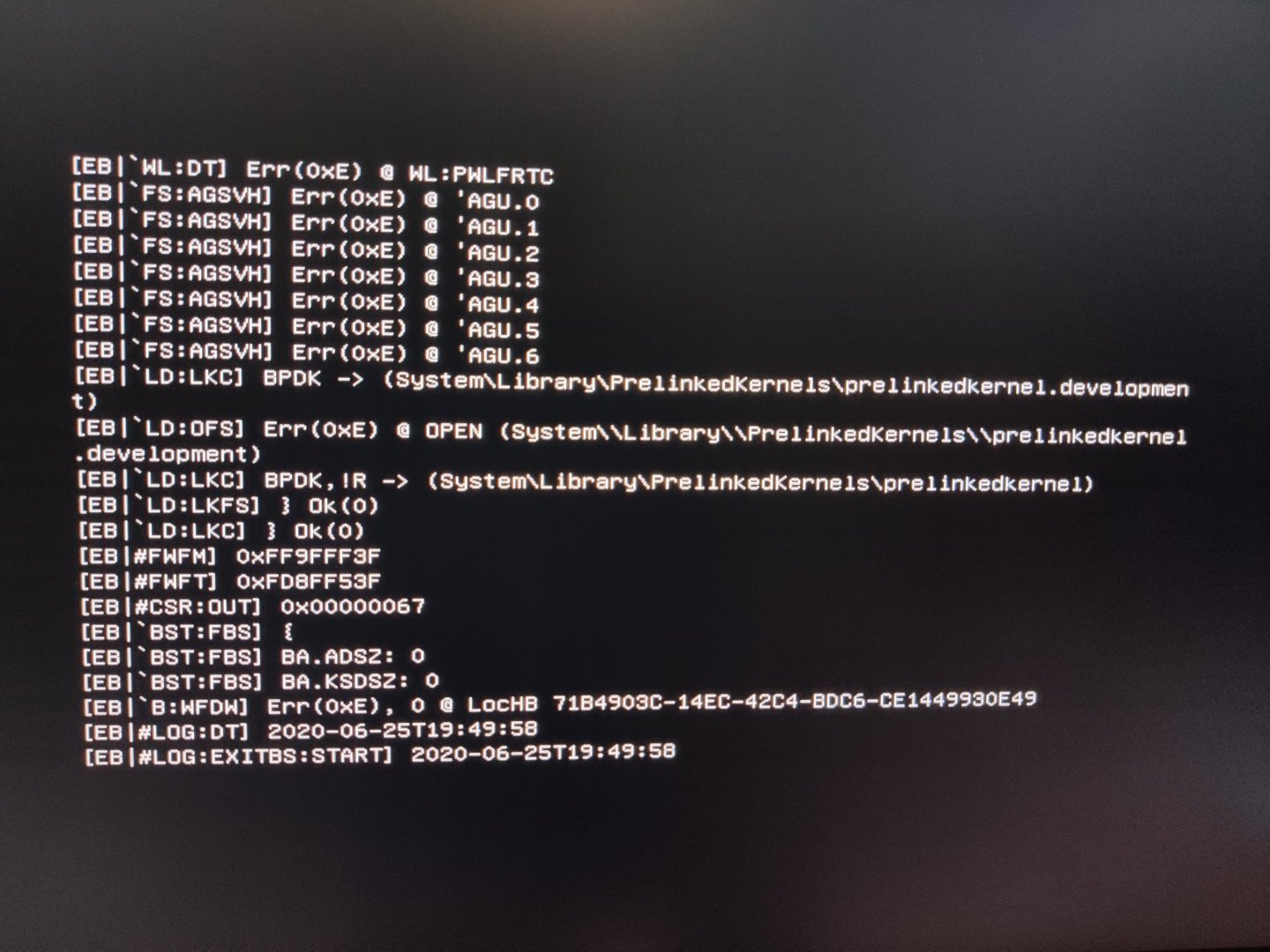 Beim booten ins System gibt's einen Kernel-Panic, daher hab ich ein kleines Video angehängt, wo das zu sehen ist. Das booten in die Recovery von Big Sur funktioniert problemlos. NVRAM Reset wurde schon durchgeführt.