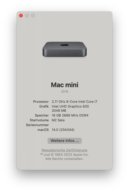 Basierend auf dem vorherigen Beitrag OPTIPLEX 3060 MFF - VENTURA - OPENCORE konnte ich mit einer aktualisierten Open Core Version (0.9.5) inkl. aller Kextdateien eine Neuinstallation von Sonoma erfolgreich durchführen. Ich habe meine verwendete EFI Datei gezipt und angehängt. (Das Update von VENTURA hat leider nicht geklappt, da ich eine alte Open Core Version (0.8.5) verwendet habe - das Betriebssytem wurde dabei korrumpiert.)