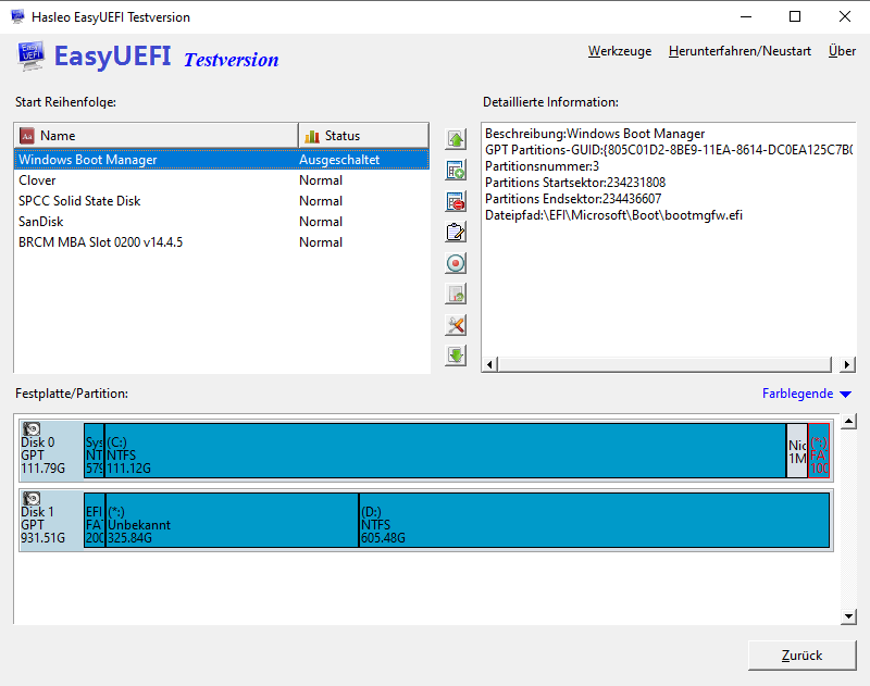 Windows EFI ist auf der SSD und Clover EFI ist auf der HDD. Sind beide getrennt