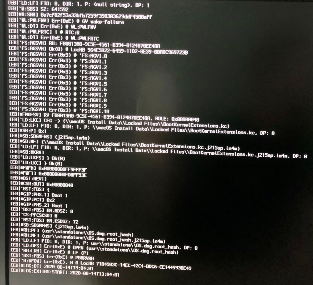 Nach dem ersten Reboot in den macOS-Installer bleibt der Rechner sofort mit der folgenden Fehlermeldung stehen: