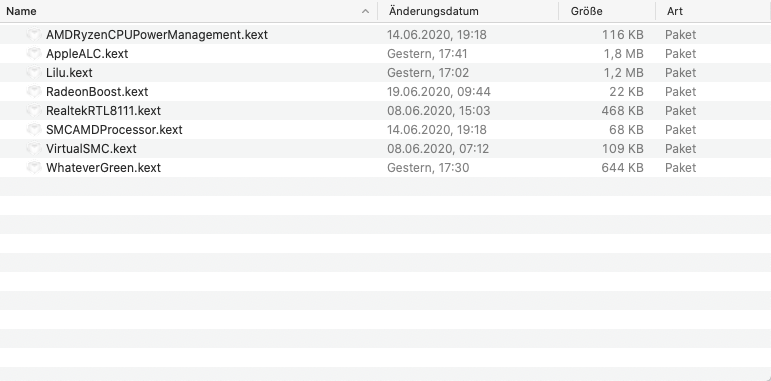 cobanramo habe den Fehler gefunden.Die Kext hatte eine andere Version. Bin nur gerade im Garten, werde später Mal meine EFI hochladen. Sonst macht die Frau Stress 😂. Danke erstmal an alle die mir geholfen haben. Somit läuft es auch auf einem Ryzentosh.