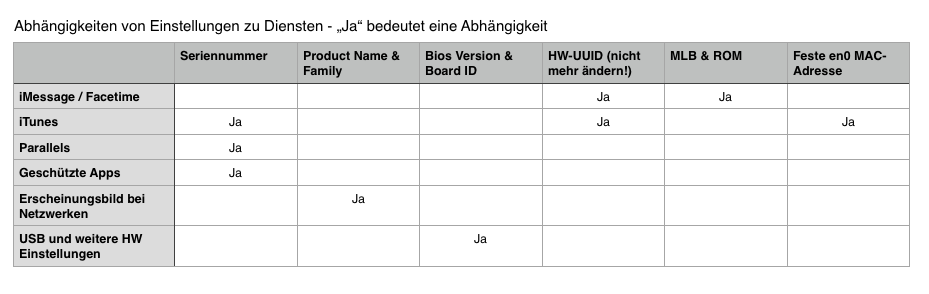 - Als Tipp konnte ich in root86.com finden (Link), dass man eine eigene plist der Board-ID anpassen und in die .kext von "X86PlatformPlugin.kext" kopieren möge. Mit dem Hinweis den Autors auf mögliche Probleme bei iMessage habe ich von diesem Vorgehen erstmal Abstand genommen, weil im Prinzip läuft mein Rechner ja topsuper und der per Default gesetzte Wert 0x3840 scheint für dieses Board so verkehrt nicht zu sein.