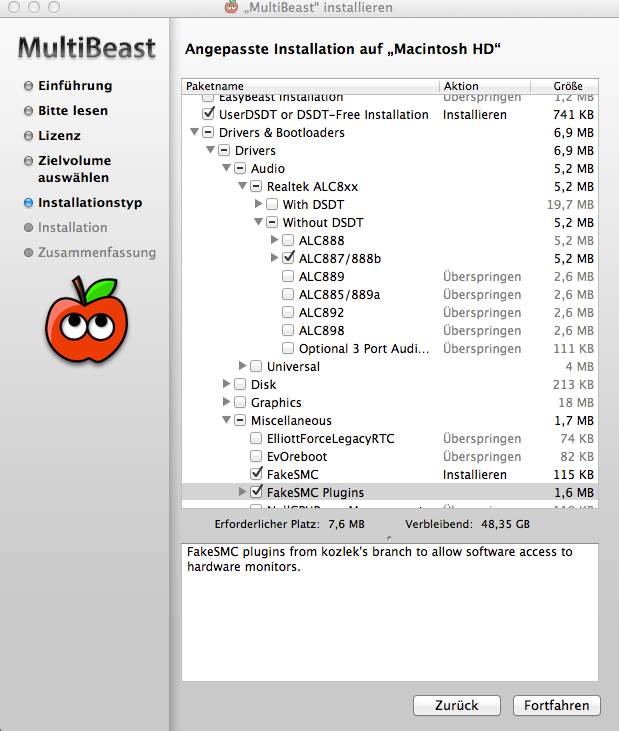 so System läuft mit Mavericks 10.9.1, muss nur noch Sound installieren. Das mache ich dann mit Multibeast, oder?