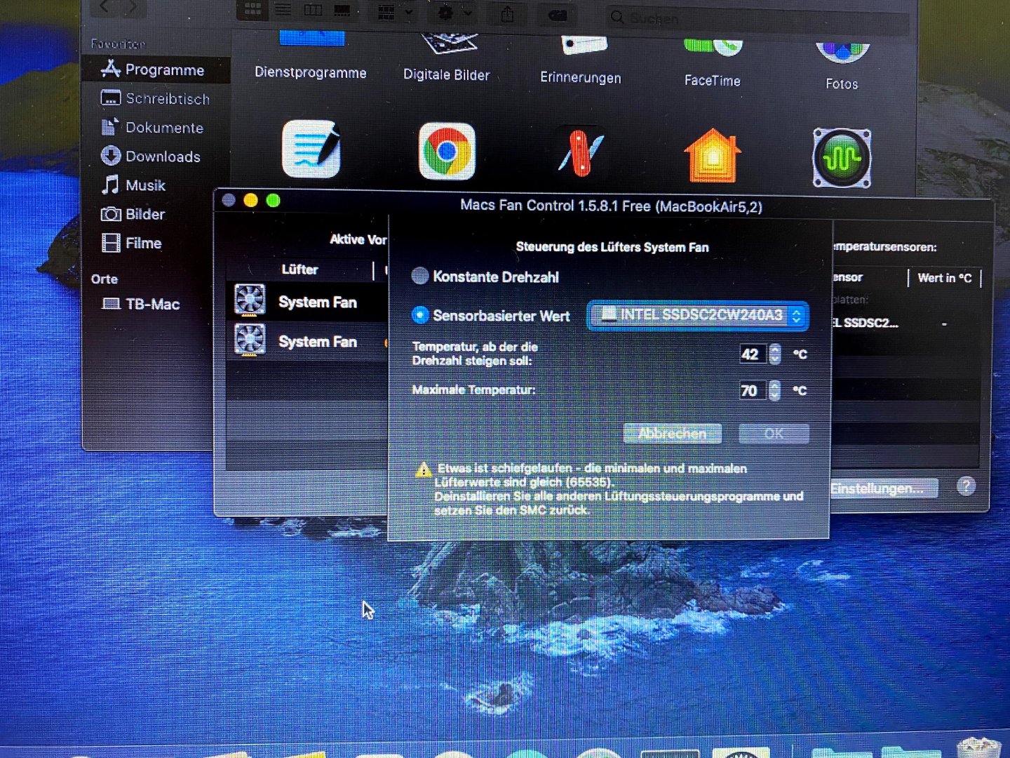 hab mich mal mit dem Tool Macs Fan Control probiert kann den einen Eintrag aber nicht anpassen.