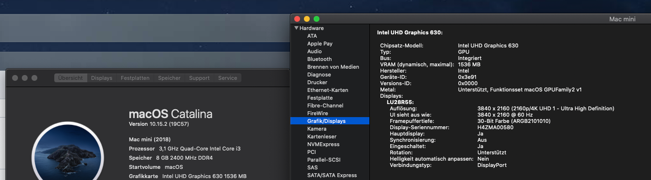 Im Gegensatz zum Dell wird hier mein 4K Monitor erkannt und richtig dargestellt.
