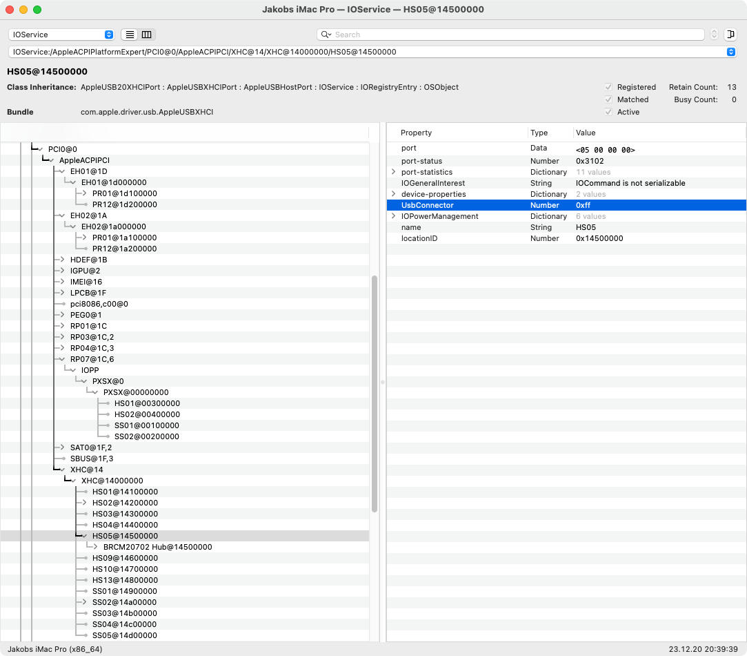 - id=500 level=255 0x4=USB creat=22.12.20, 13:40 description=com.apple.usb.externaldevice.14a00000 owner=IOUSBHostDevice