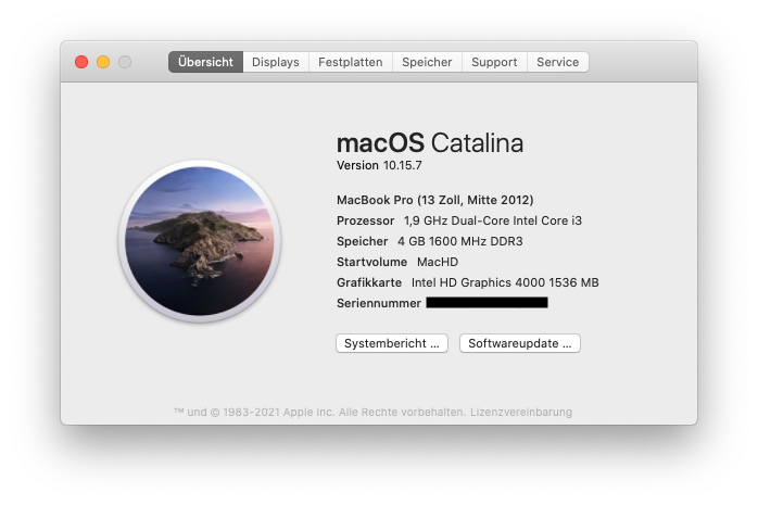 Nach einigen Versuchen… verschiedenen USB Sticks, mit Hilfe dieses Forums (OHNE tony) und immer im Kampf mit der VM, schaffte ich es tatsächlich und siehe da… macOS Catalina 10.15.7 auf einem Thinkpad Edge E130. Läuft noch nicht ganz Rund…