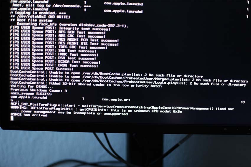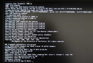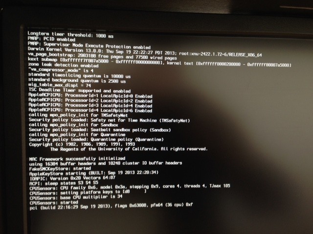 In sehr unregelmäßigen Abständen habe ich nun seit dem Uptate Probleme mit Freeze beim Booten. Ich versuche das Problem einzugrenzen und habe einige Fotos im Verbose-Modus beim Freeze gemacht. (siehe Foto) Der Rechner bleibt immer an der gleichen Stelle stehen. (10 mal starten, ca. 2 mal Freeze). Wenn der Rechner hochfährt läuft er scheinbar normal.